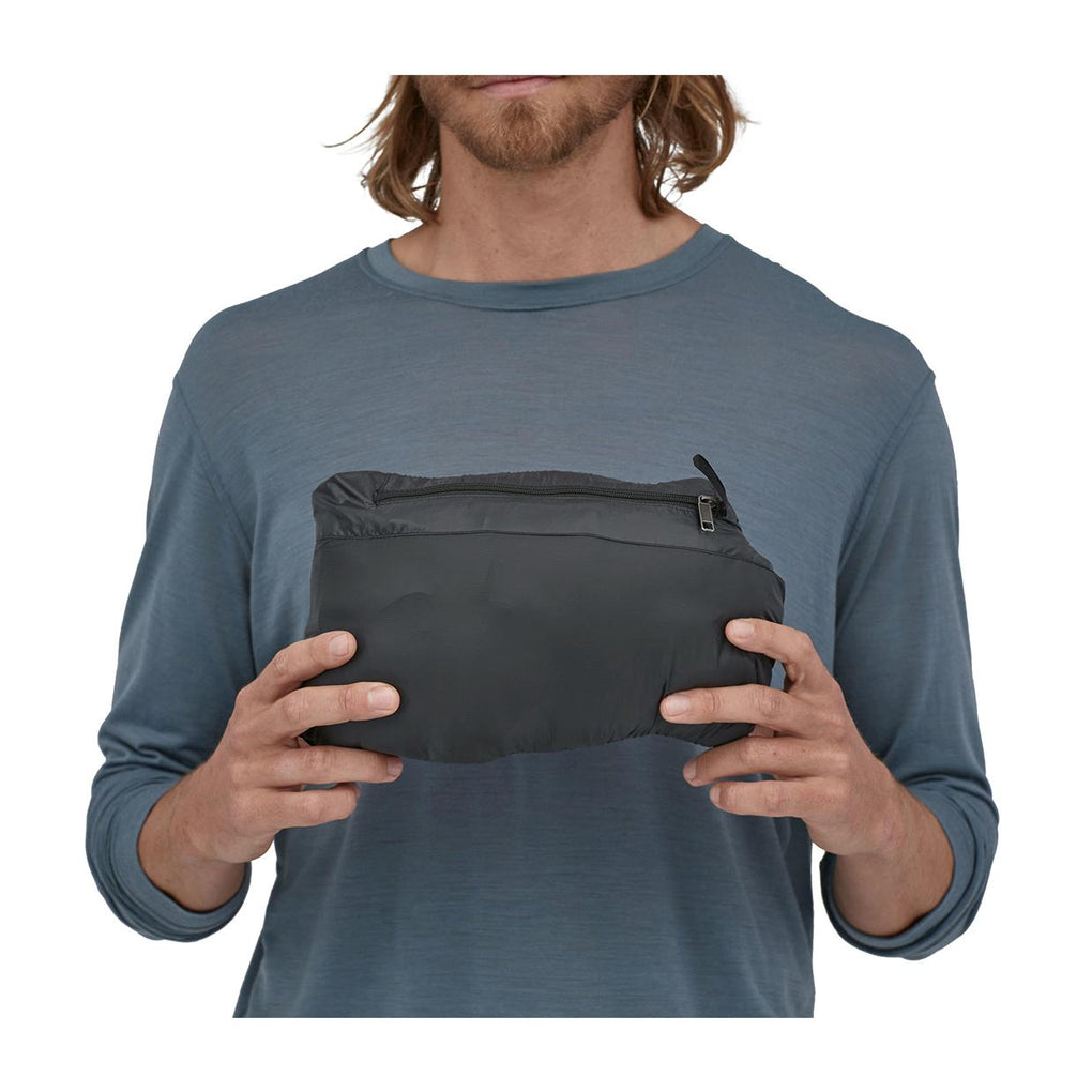 84623 - Black Il  Gilet Patagonia Down Sweater Vest è realizzato in tessuto esterno ripstop realizzato in 100% poliestere riciclato, dotato di trattamento idrorepellente a lunga durata ( D W R).  L'imbottitura è in piume d'oca 800-fill-power (provenienti da oche ed anatre non sottoposte ad alimentazione forzata o spiumaggio da vive), mentre il giromanica è elasticizzato con un bordo in nylon che impedisce la dispersione di calore. Sono presenti due tasche scaldamani sul davanti con zip  Vislon® ed una tasca interna con zip sul petto, dotata di asola interna per moschettone. L'orlo è regolabile internamente grazie ad un cordoncino e può essere allentato tramite gli stopper presenti sulla parte frontale. Dettagli prodotto: Cuciture Fair Trade Certified™ Vestibilità regolare Zip  Vislon® dotate di flap di protezione Due tasche scaldamani sul davanti Una tasca interna dotata di asola per moschettone Giromanica elasticizzato con bordo in nylon Orlo regolabile250g Composizione: Tessuto  Net Plus® ripstop da 41 g/m² in 100% nylon riciclato, con trattamento idrorepellente a lunga durata ( D W R) Imbottitura 800- Fill- Power in 100% piuma R D S