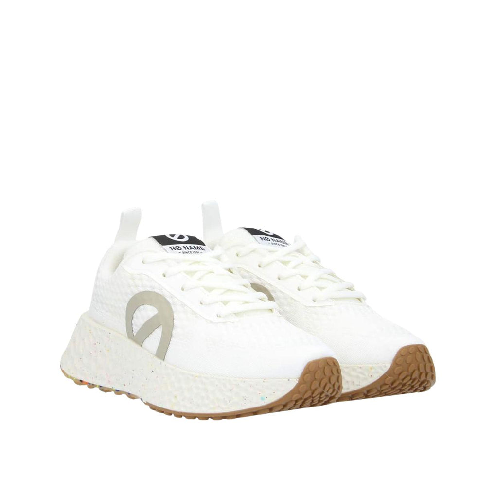 Le Sneakers Plateau Donna No Name carter Fly W sono realizzate in 100% poliestere riciclato certificato GRS. La soletta è realizzata in 100% cotone biologico certificato GOTS, mentre la suola combina EVA e gomma riciclata. Uno stile sportivo ed eco-responsabile con una suola alta 5 cm. Senza fodera per la massima leggerezza.