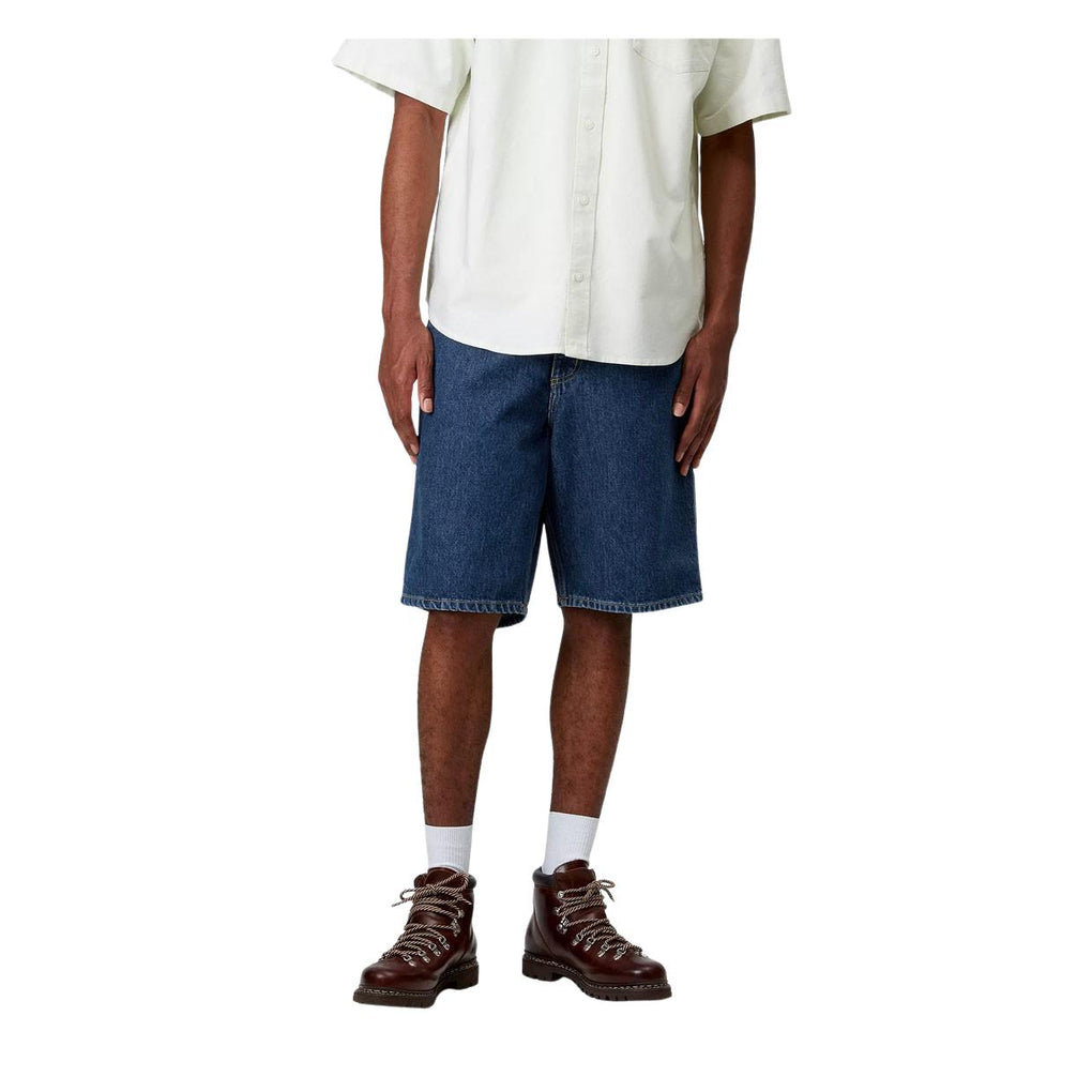 Die Bermuda Carhartt WIP Single Knee Jeans sind aus 100% schwerem Smith Denim gefertigt, mit Steppnähten an den am stärksten beanspruchten Stellen; dieses Modell hat eine lockere Passform, einen Reißverschluss- und Knopfverschluss sowie verschiedene Utility-Taschen für Arbeitswerkzeuge. Das Carhartt WIP Etikett ist auf der rechten Gesäßtasche eingewebt. Artikelnummer: I032026_01_06