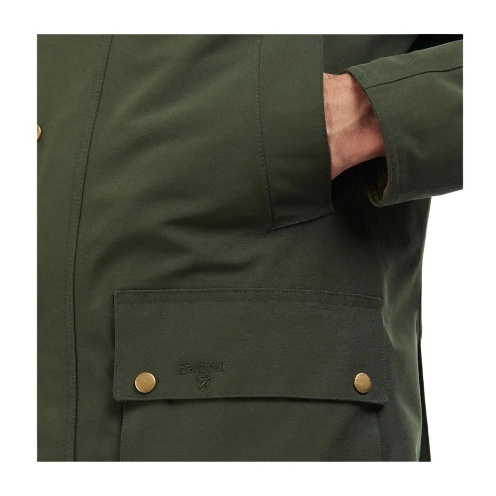 Il logo Barbour & Shield tono su tono è ricamato sulla patta della tasca sinistra.