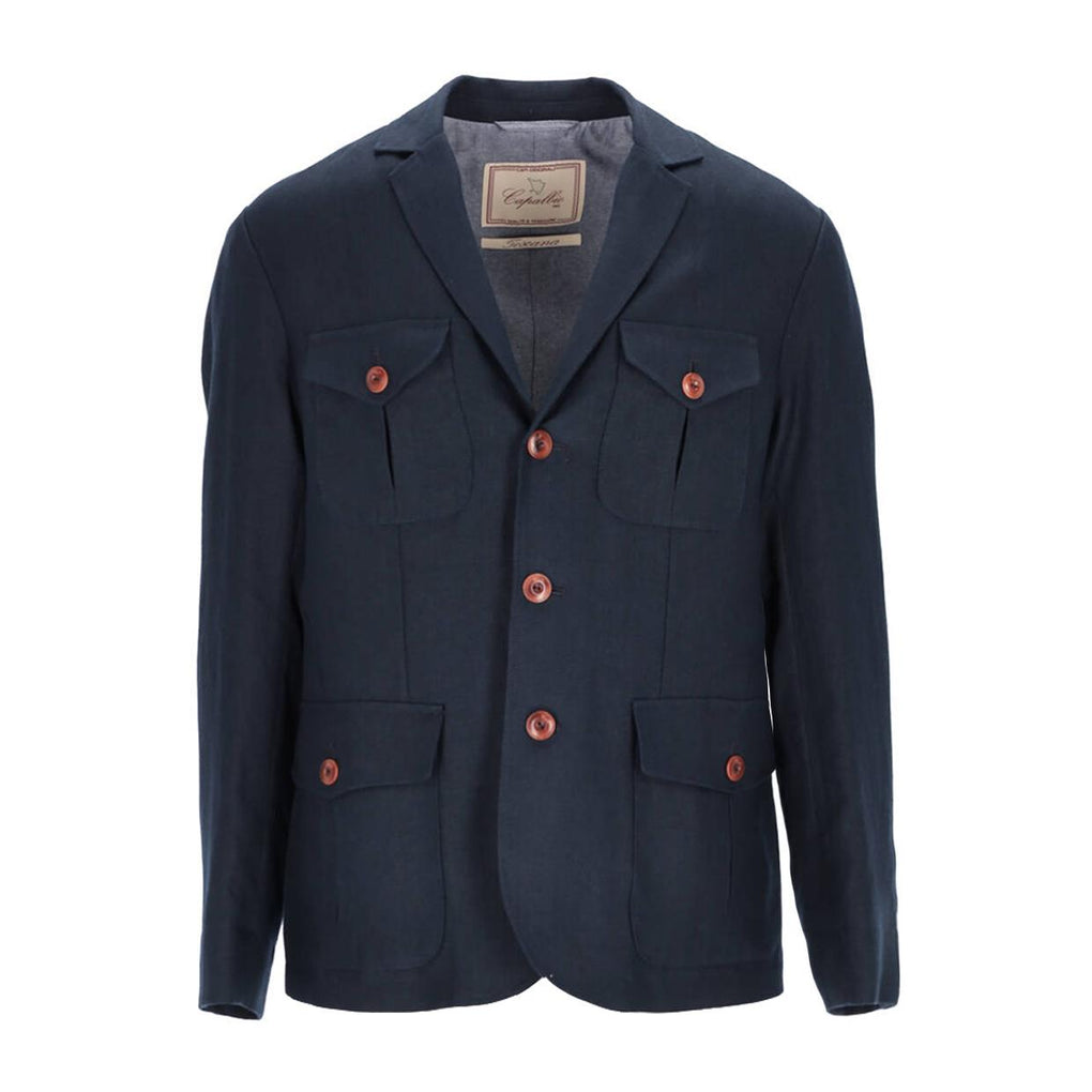 La Giuacca Uomo Capalbio Collina è realizzata in cotone; fodera interna; chiusura frontale con bottoni; due tasche laterali con chiusura a patta e bottone così come le due tasche che troviamo sul petto.