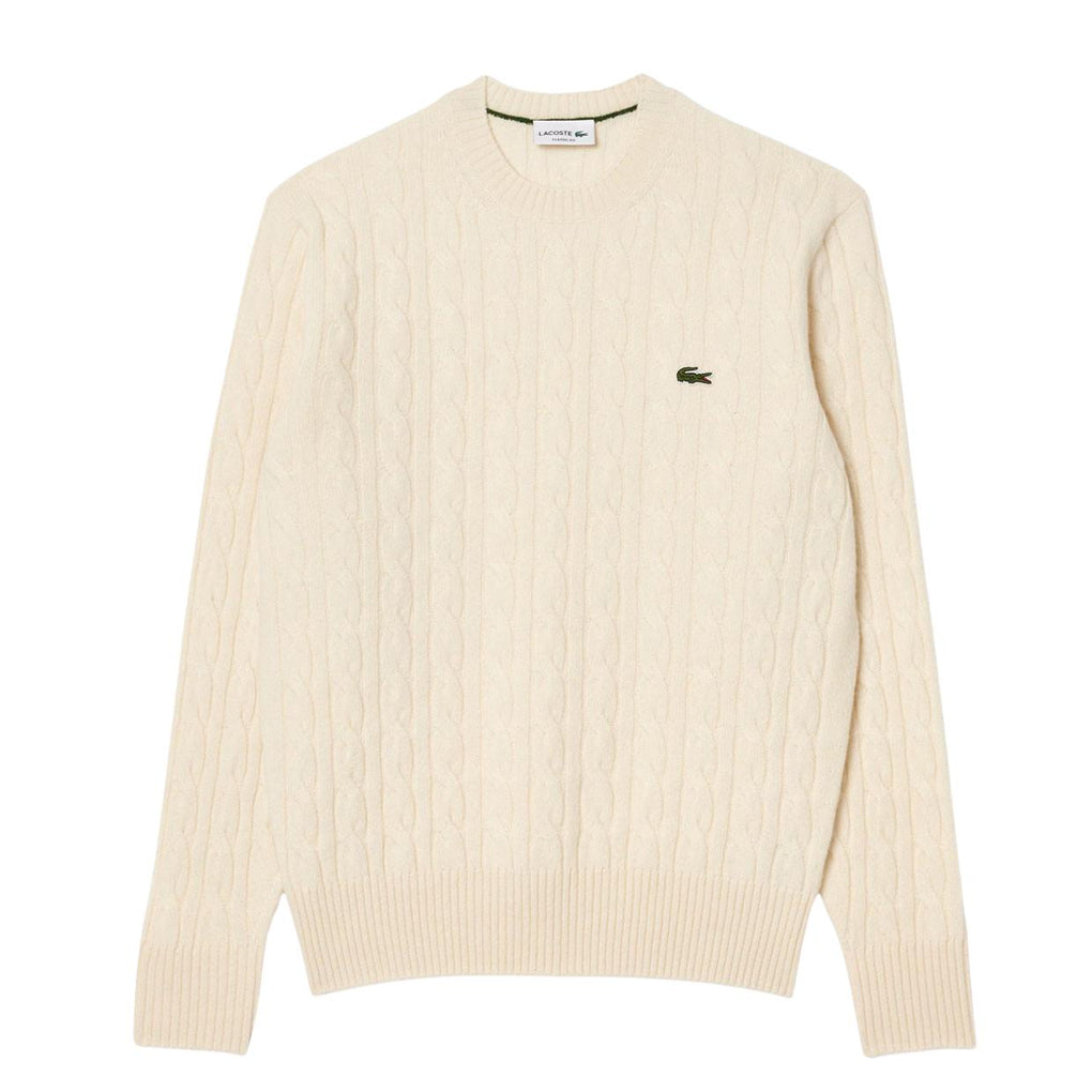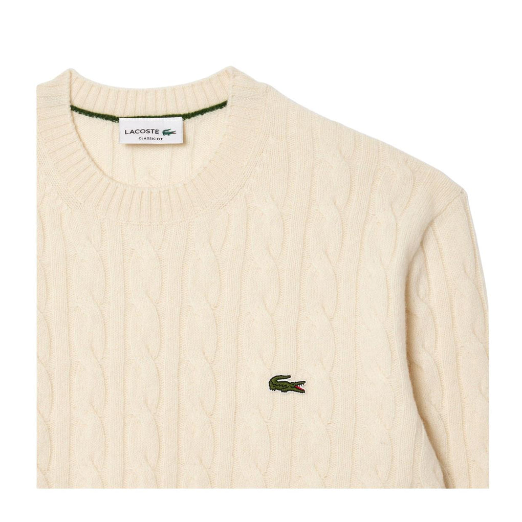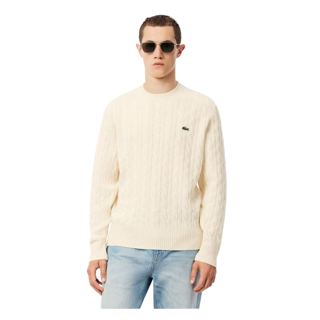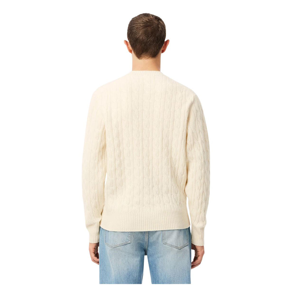 Maglione Uomo Lacoste Trecce Lana Cardata Panna