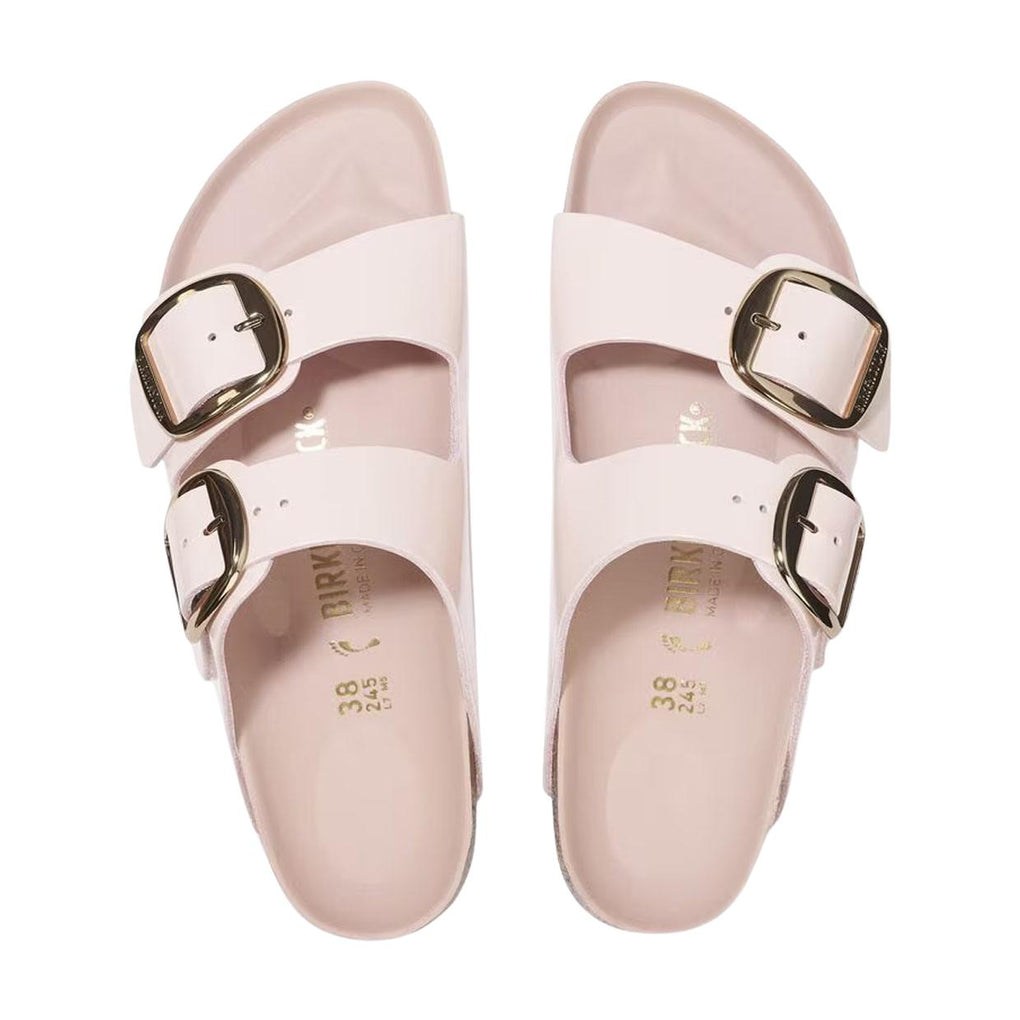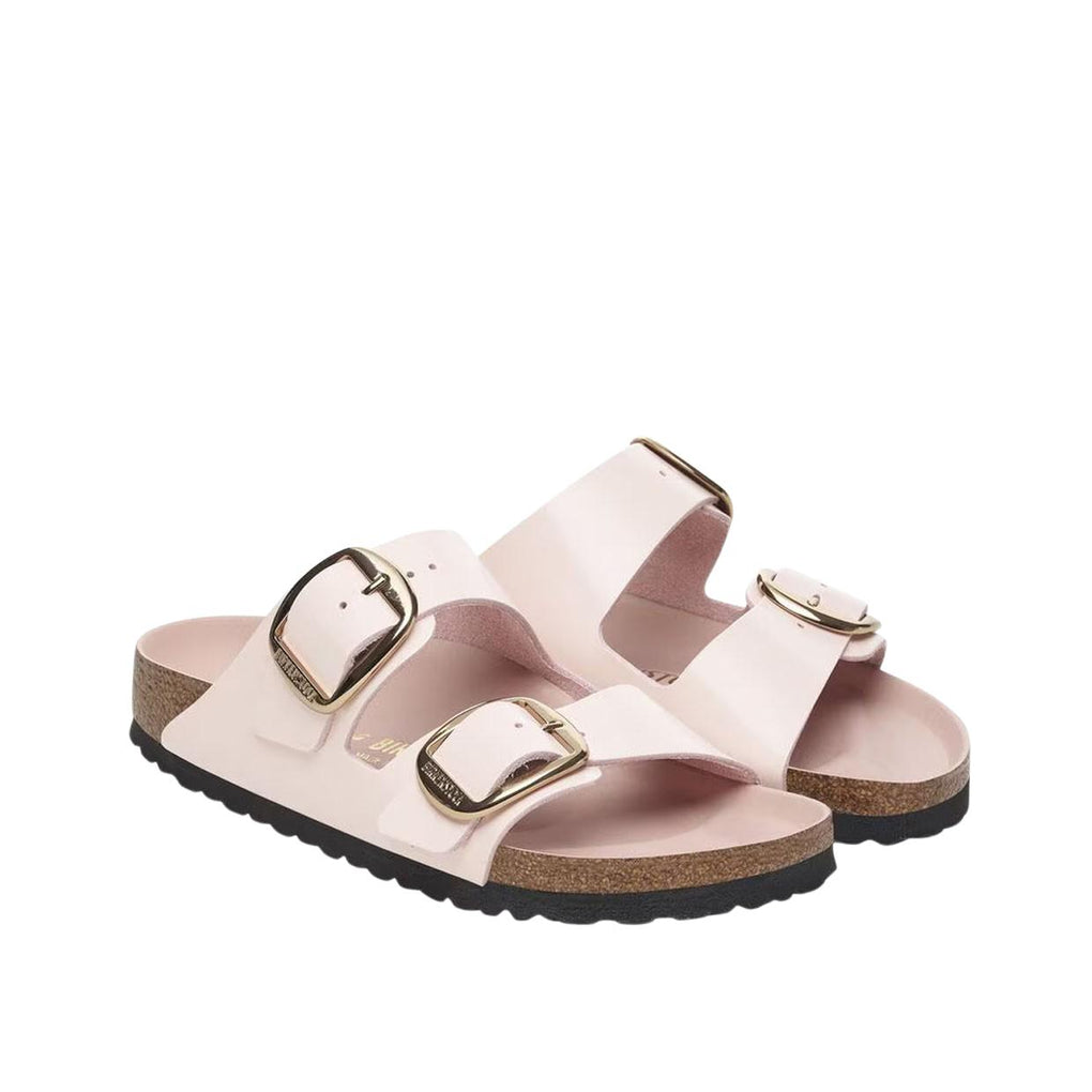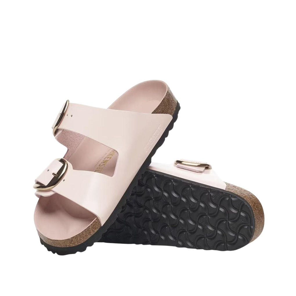 Die Sandalen Birkenstock Arizona Big Buckle verfügen über ein Obermaterial aus Patentleder, einem natürlichen Leder mit glänzendem Aussehen und lackierter Oberfläche; dieses Modell ist mit einer anatomischen Kork-Latex-Fußbett, einer mit Leder bezogenen Decksohle und einer EVA-Sohle zur richtigen Stoßdämpfung ausgestattet.