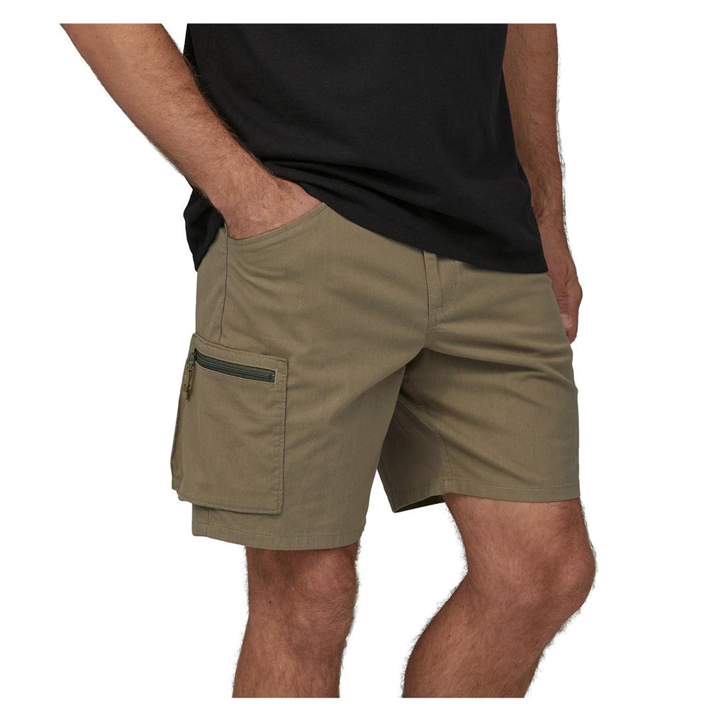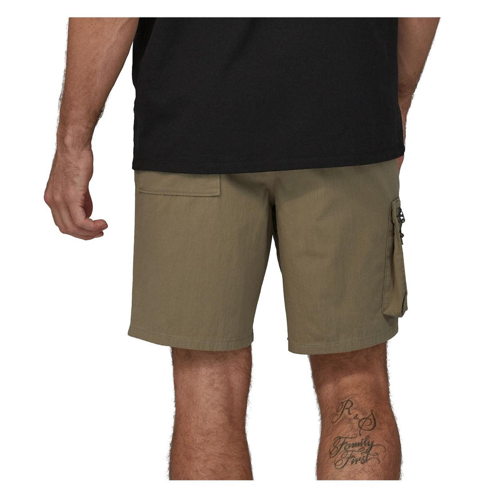 57180 S K A - Sage Khaki I Bermuda Patagonia Herren Nomader Shorts sind aus einem Stoff aus Bio-Baumwolle/Recyceltem Nylon-Mischgewebe gefertigt, mit einem minimalen Anteil an Elasthan, der Elastizität und Bewegungsfreiheit gewährleistet; dieses Modell verfügt über einen elastischen Bund mit Kordelzug, einen Reißverschluss- und Knopfverschluss sowie fünf Außentaschen, davon eine mit Reißverschluss am rechten Oberschenkel. Alle Nähte sind Fair Trade Certified™. Produktdetails: Gewebe mit einfacher Bindung aus 71% Bio-Baumwolle, 27% recyceltem Nylon und 2% Elasthan Elastischer Bund mit Kordelzug Reißverschluss- und Knopfverschluss Zwei seitliche Leistentaschen Zwei Gesäßtaschen Eine Reißverschlusstasche am rechten Oberschenkel Nähte Fair Trade Certified™