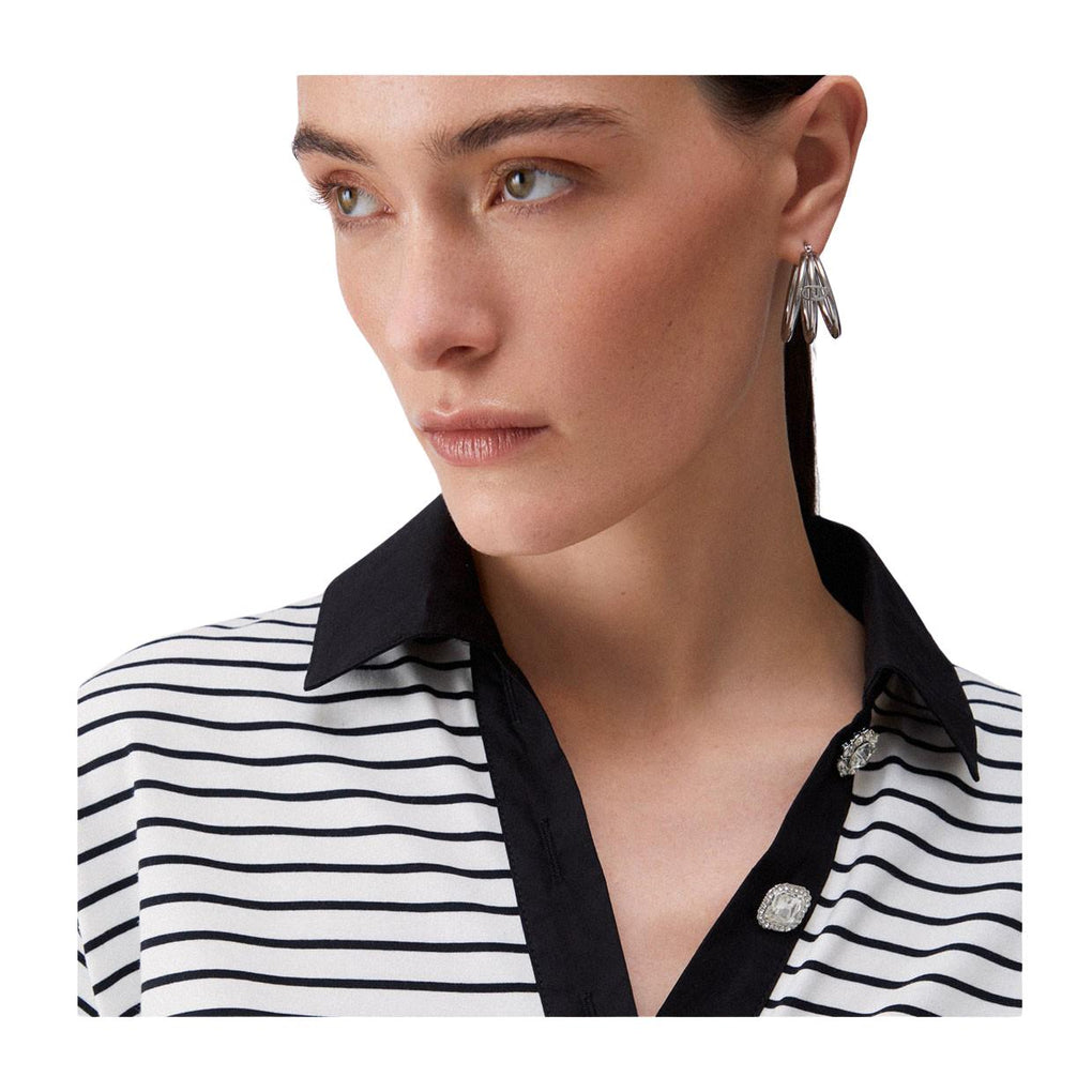 T-Shirt Donna Liu-Jo Polo Rigata Bianco/Nero