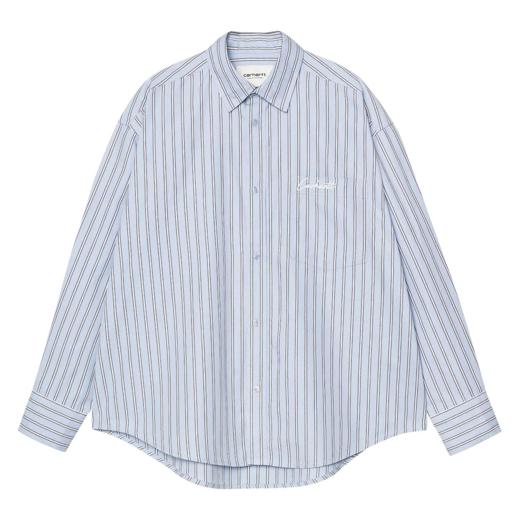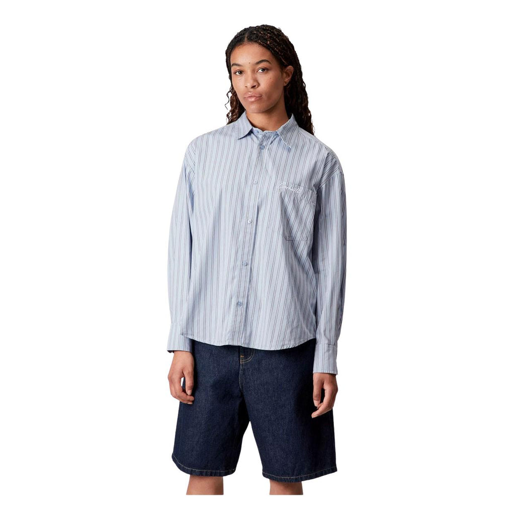 Camicia Donna Carhartt W' L/S Grimsby Shirt Stripe Celeste/Bianco