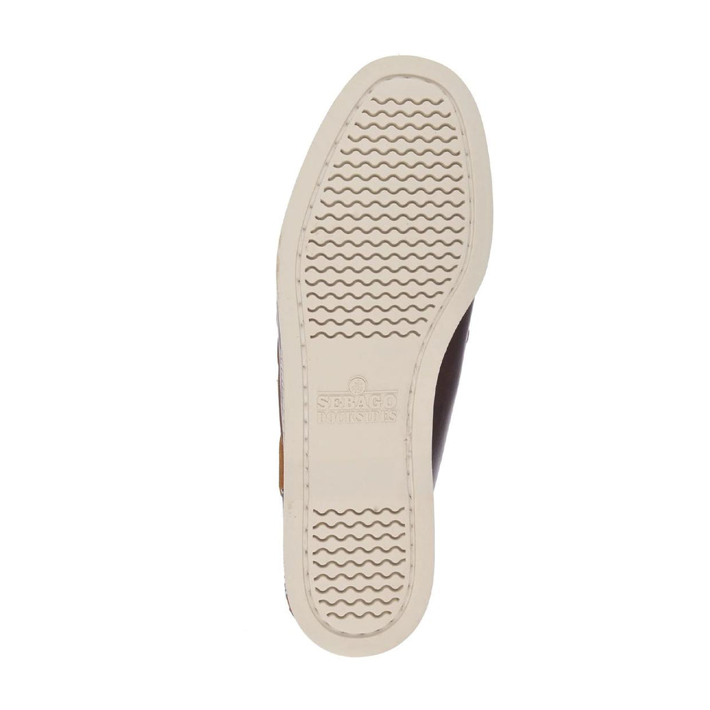 The Sebago Docksides Portland Waxed Women's Moccasins were born as nautical footwear, made from a single piece of hot-tanned leather nourished with a mix of oils and waxes; this boat shoe features a leather insole, a 360° lacing system, and a non-marking grooved rubber anti-slip sole.