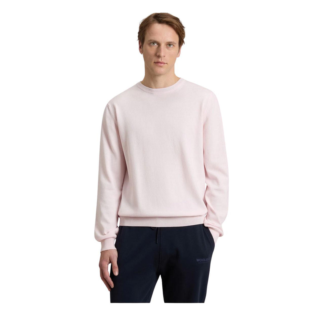 Maglia Uomo Woolrich Logo Cotton Crew Nack Rosa