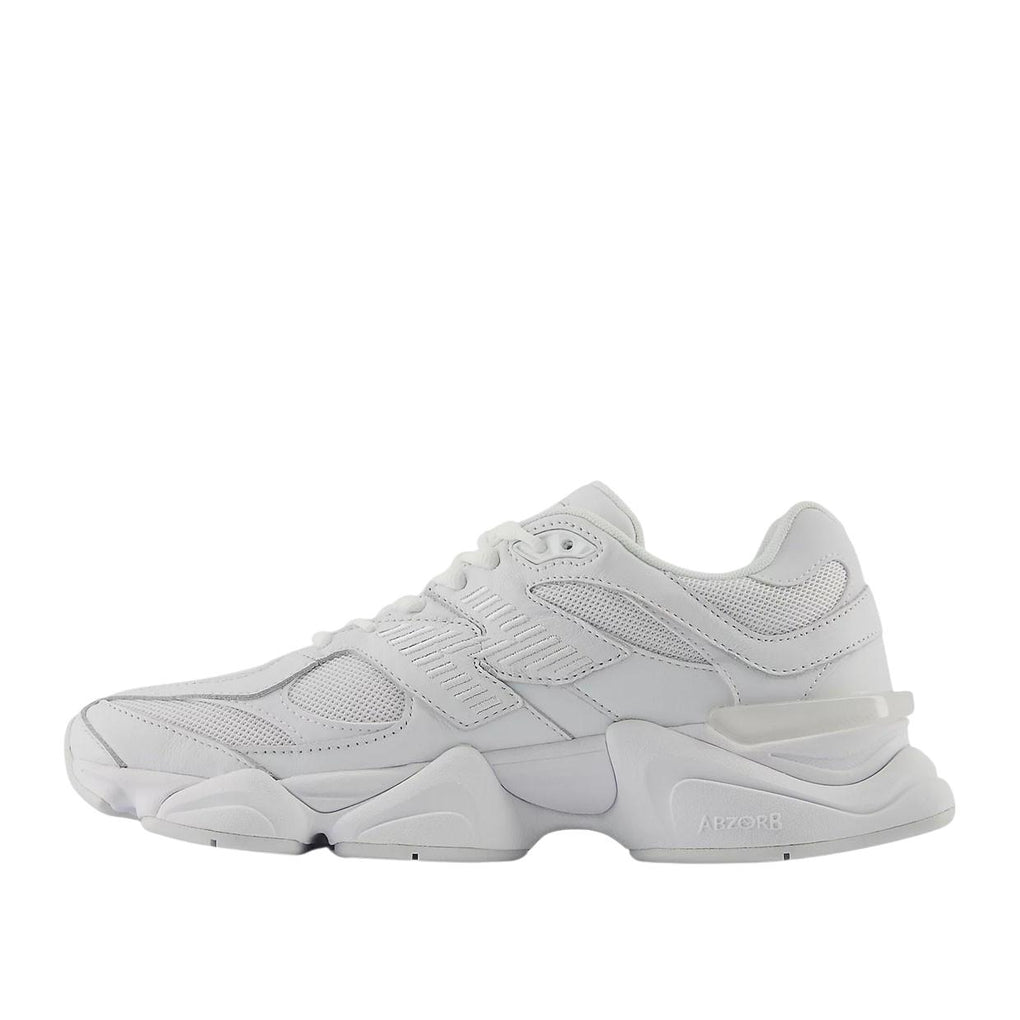 La 9060 è una nuova espressione dello stile raffinato e del design innovativo della classica serie 99X. La 9060 reinterpreta i familiari elementi della 99X con una sensibilità distorta ispirata all'estetica orgogliosamente futuristica e tecnologicamente avanzata dell'era Y2K. Le barre stabilizzatrici, riprese dalla 990, sono espanse e utilizzate su tutta la tomaia per un senso di movimento visibile, mentre linee ondulate e proporzioni in scala su un'intersuola scolpita a forma di baccello pongono un'enfasi esagerata sulle familiari piattaforme di ammortizzazione di ABZORB e SBS