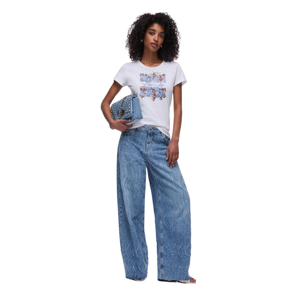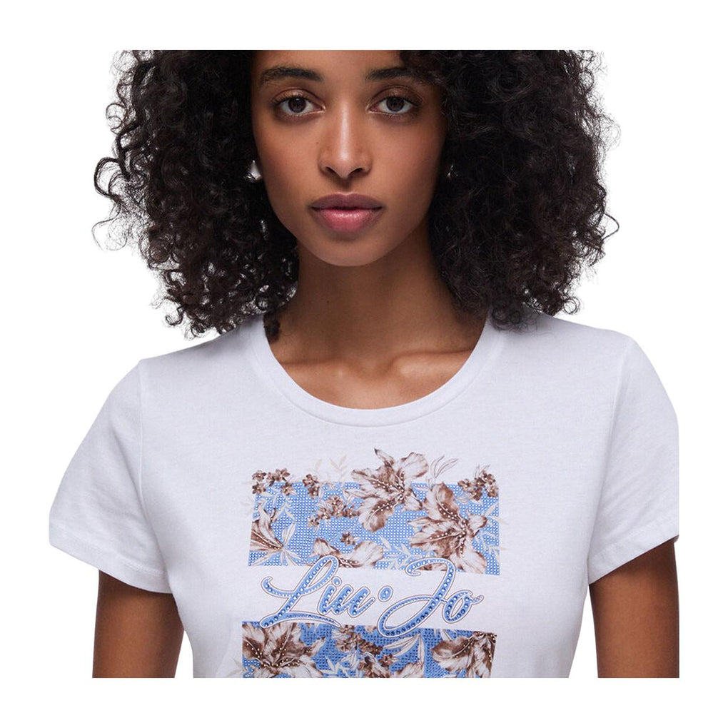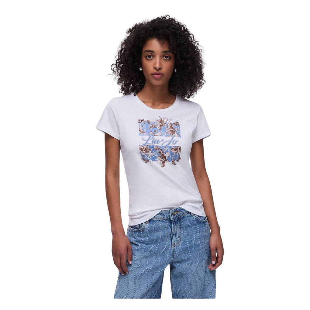 T-Shirt Donna Li-Jo Scollo G/C Stampa Bianco
