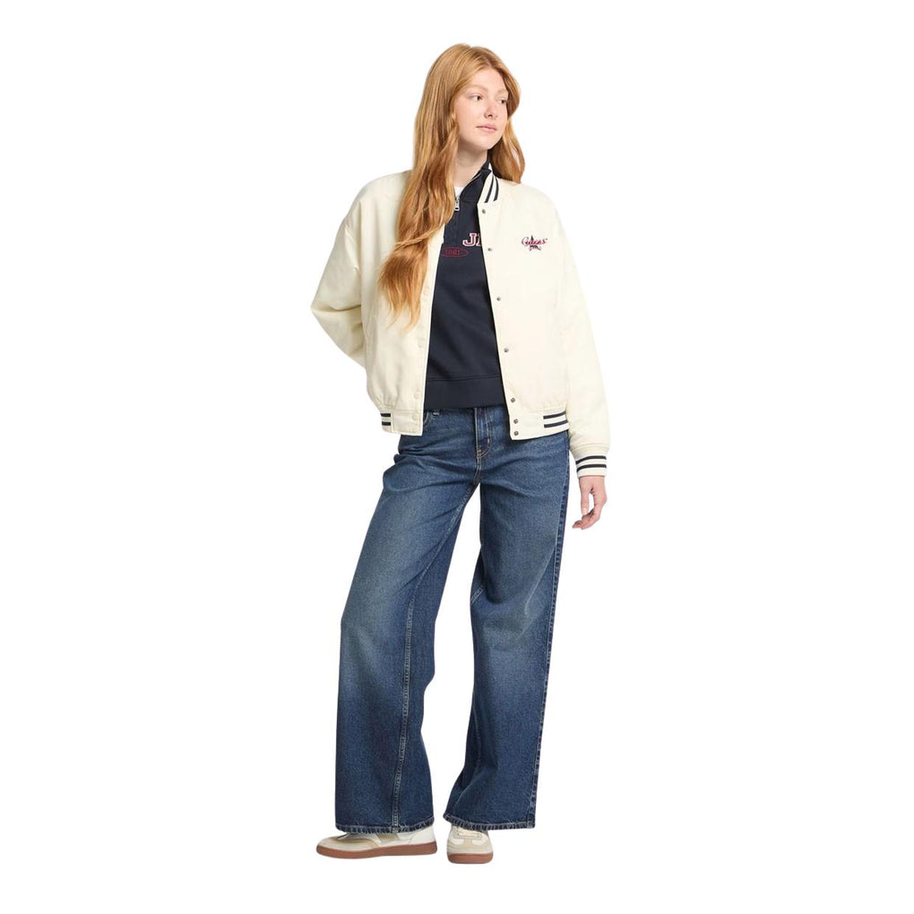 I Jeans Guess sono realizzati in denim stretch di 100% cotone, caratterizzato da un lavaggio indaco medio; questo modello a palazzo presenta una vita media, una vestibilità baggy ed una chiusura con zip e bottone.