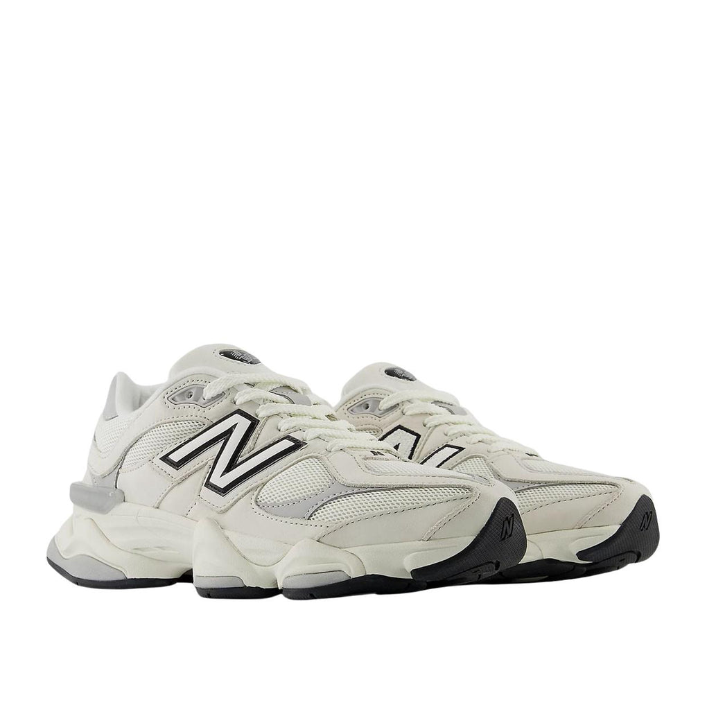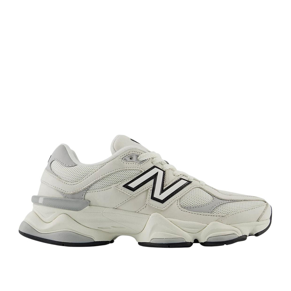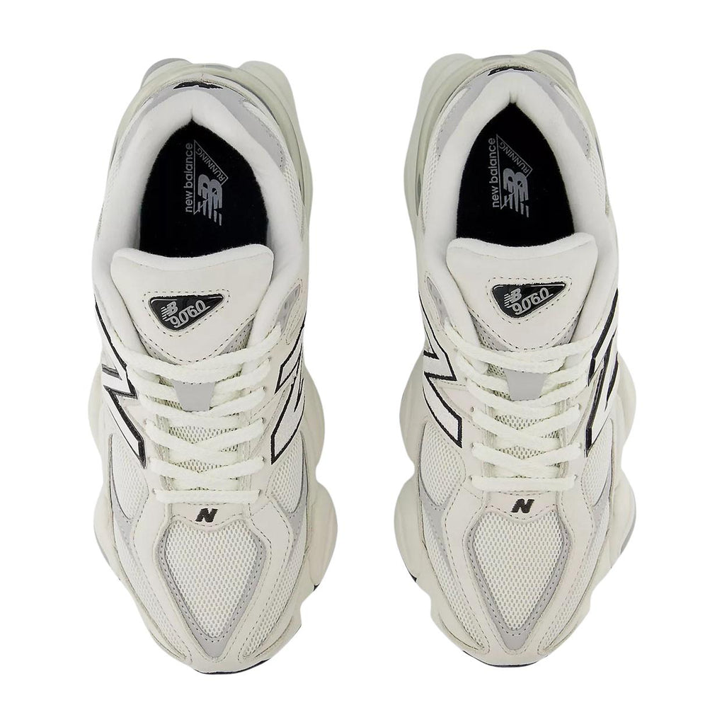Le Sneakers New Balance 9060 presentano una tomaia realizzata in pelle scamosciata e mesh, con delle barre di oscillazione per dare un senso di dinamicità; questo modello nasce come reinterpretazione della seria 99X, con l'aggiunta di un'intersuola ABZORB a doppia densità che garantisce una corretta ammortizzazione degli impatti.La suola in gomma presenta un design a rombi, ispirato al modello 860.
