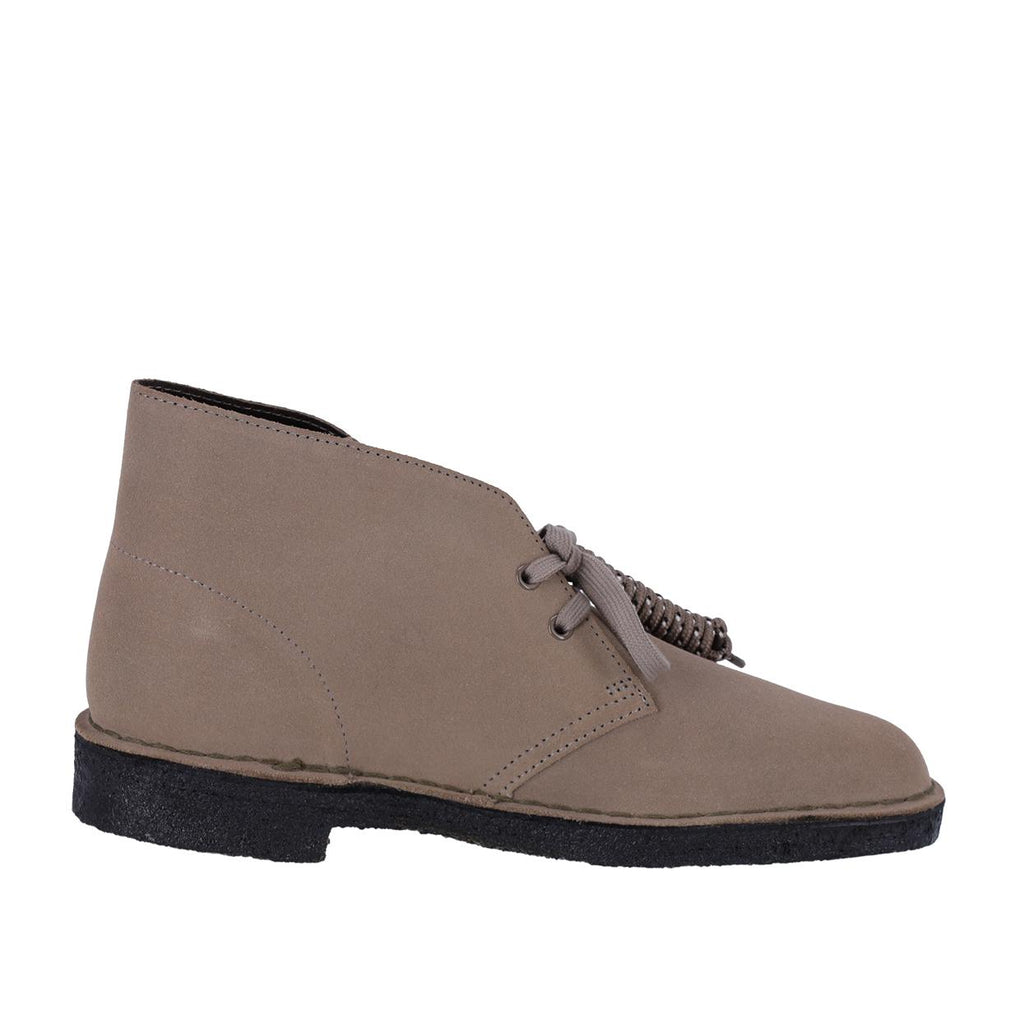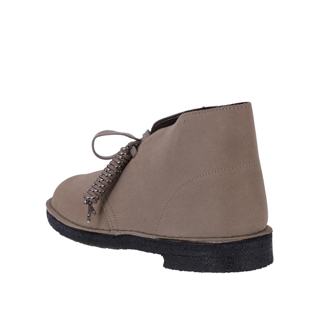 26161792 - Grey Suede Le  Desert Boot Clarks rappresentano una delle calzature più influenti a livello mondiale; realizzate per la prima volta nel 1950 da  Nathan Clark ed ispirate ad un paio di stivali del Bazaar del Cairo, in poco tempo divennero un'icona di stile per tutte le subcultures dell'epoca. Caratterizzate dalla tomaia in suede di alta qualità, proveniente dalla conceria  Charles F. Stead, e dalla suola in para realizzata con materiali sostenibili, presentano due occhielli ed una chiusura con lacci in cotone. Dettagli prodotto: Tomaia in 100% suede Suola in para Lacci in cotone Occhielli in metallo